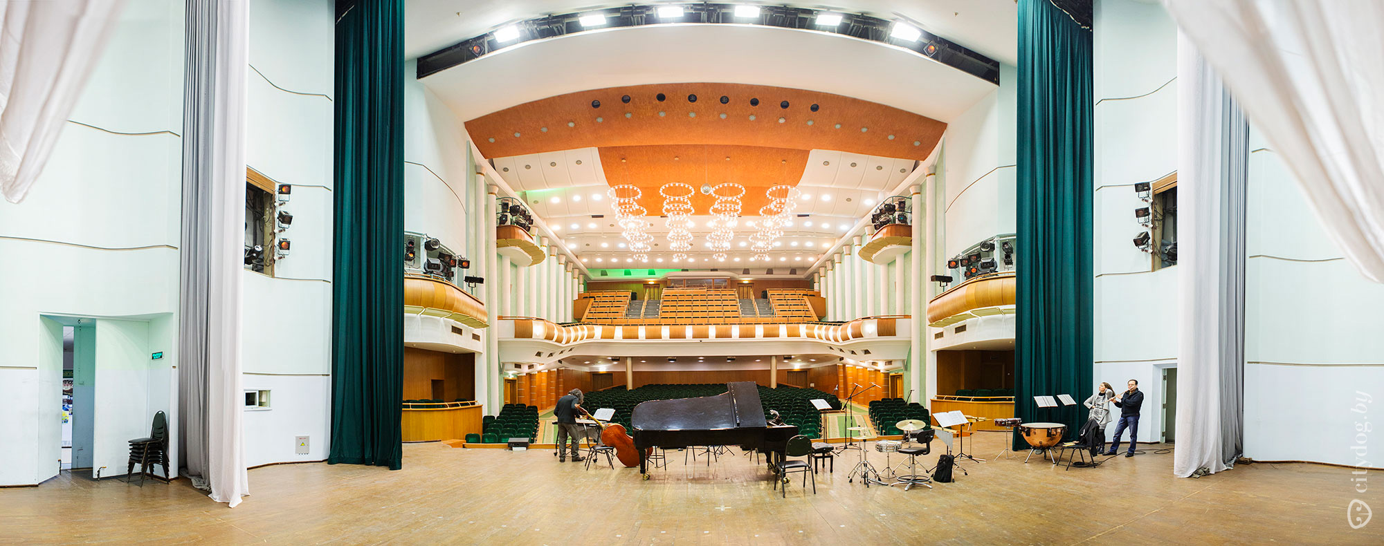 Минскую филармонию открыли в апреле 1963 года. Зал в филармонии был рассчитан на 930 мест. После капитальной реконструкции в 2004 году от прежней филармонии остался только фундамент здания. Улучшение качества звучания потребовало сокращения количества мест в зале: теперь их 690.