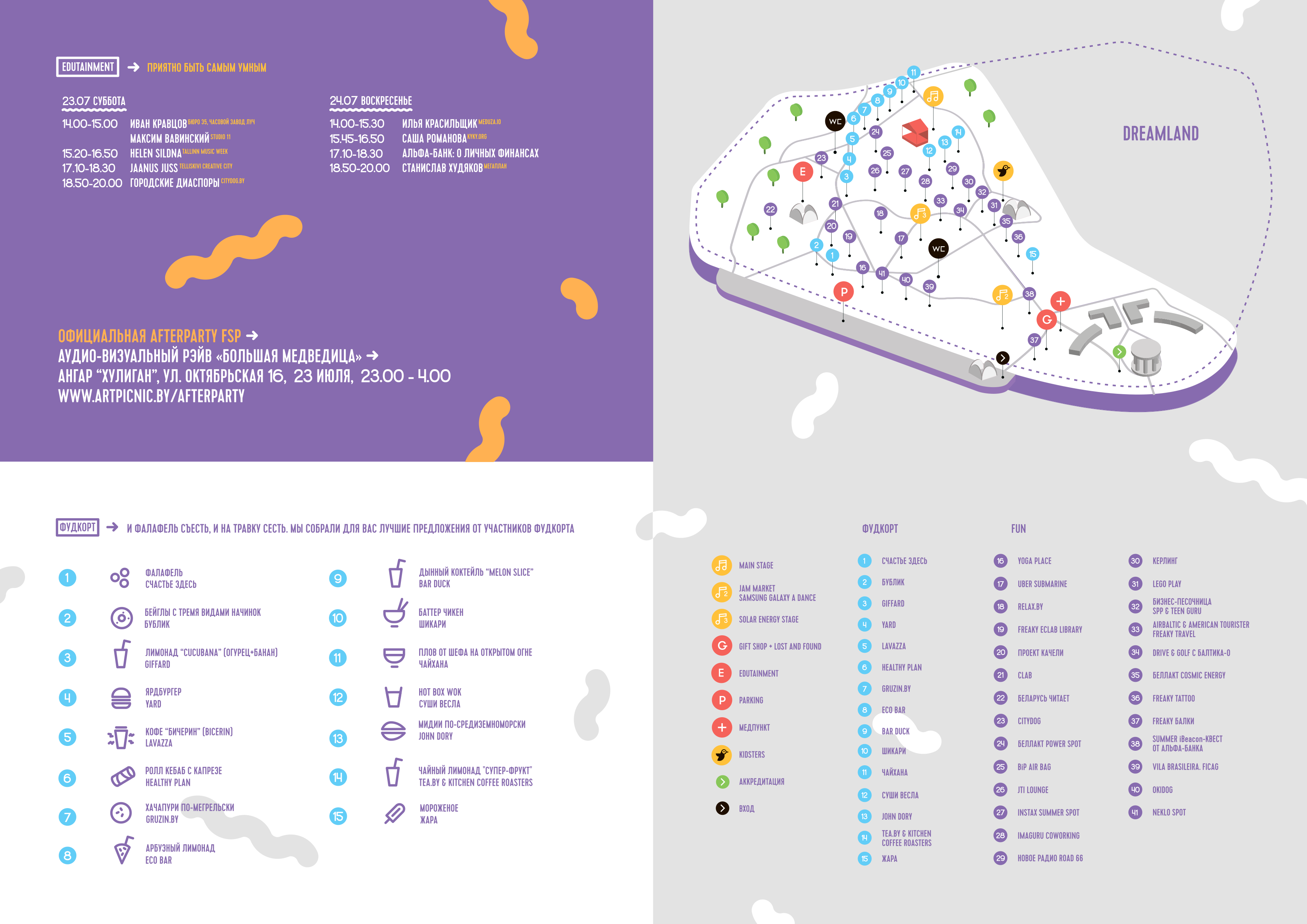 Чтобы вы не бродили по парку Dremland в поисках себя, мы расскажем и покажем на карте все важные и крутые зоны арт-пикника.