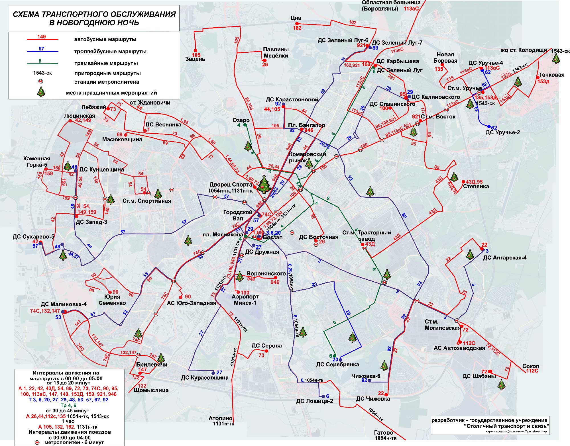 «Минсктранс» опубликовал схему движения автобусов, троллейбусов и трамваев с 31 декабря на 1 января. Смотрите, как будет ходить транспорт, если вдруг решите выбраться на гуляния на площадях.